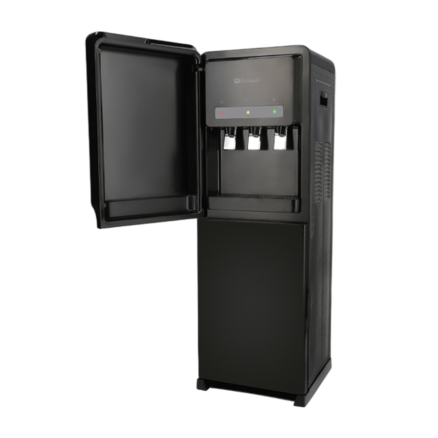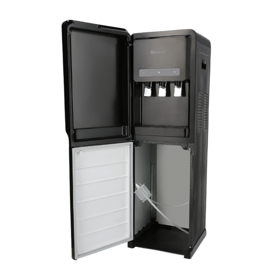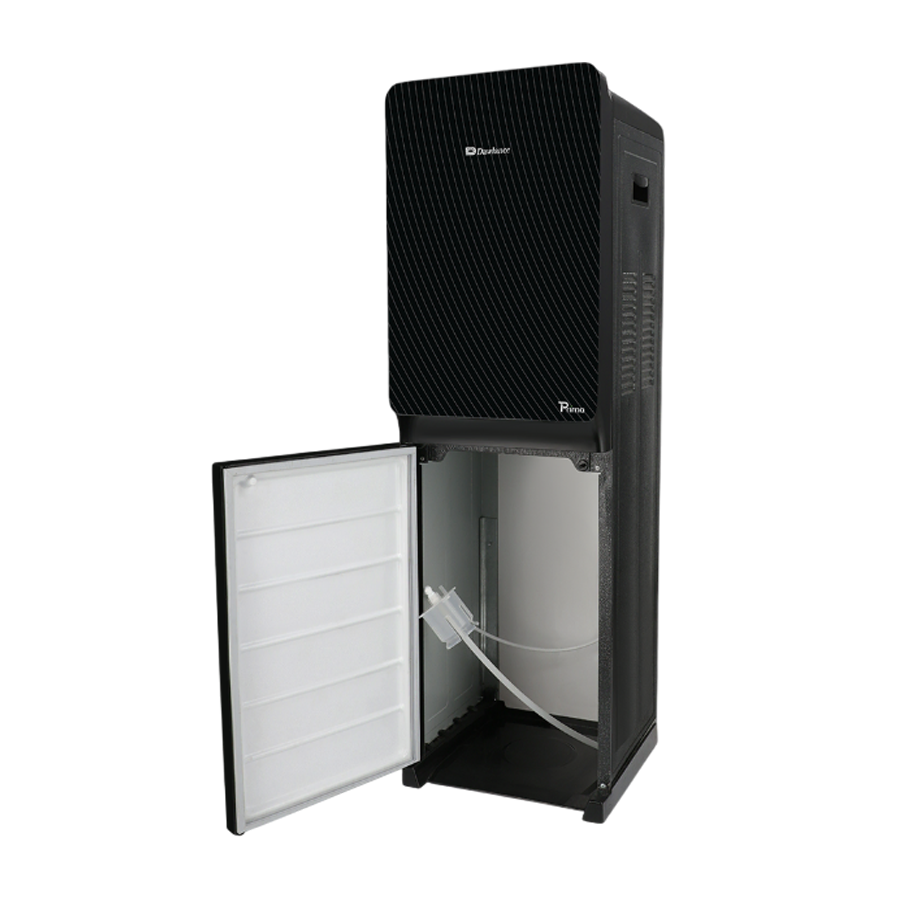 The first thing you’ll notice about the DBD-1035 is its elegant aesthetic. Featuring a premium black finish and a stylish glass door, it adds a touch of contemporary elegance to any interior. The glass door not only allows you to monitor water levels at a glance but also enhances the unit’s modern appeal, making it a fitting addition to modern homes, executive offices, cafes, and waiting areas. Its compact footprint, with dimensions of 42cm (Width) x 43.5cm (Depth) x 111cm (Height), ensures it fits comfortably in corners or against walls without occupying excessive space.